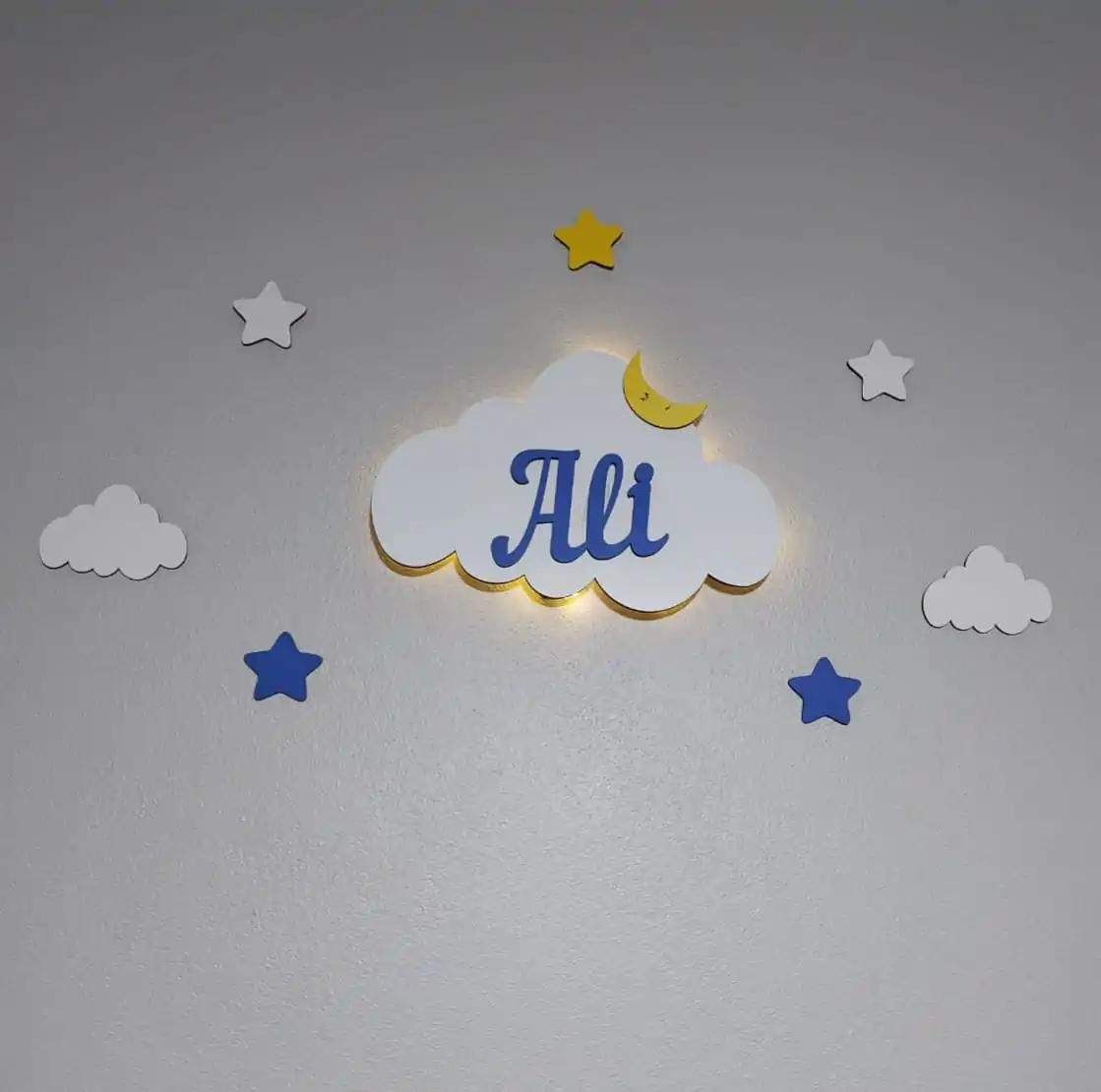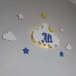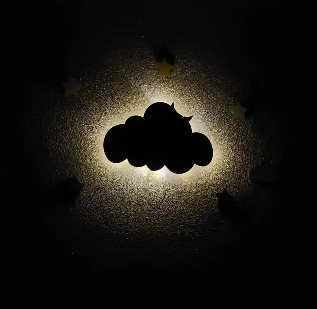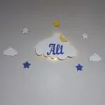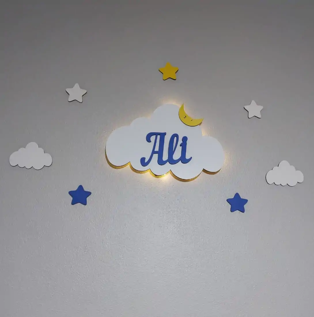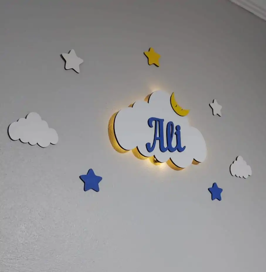 İsimli Bulut Gece Lambası Bebek Çocuk Odası Duvar Dekorasyonu Aydınlatma Ahşap Dekorasyon