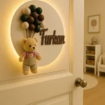 – Kişiye özel isim baskısı ile bebeğinizin adını taşıyan bu ayıcık kapı süsü, odasına sevimli bir dokunuş katıyor.; – 30×30 cm boyutlarındaki bu ahşap dekoratif parça, hem kapı hem de duvar süsü olarak kullanılabilir; böylece mekanınızda şıklığı ve işlevselliği bir arada sunar.; – Dayanıklı ahşap malzemesi sayesinde uzun süreli kullanım vaat ederken, aynı zamanda doğal bir estetik sunuyor.; – Bebek ve çocuk odaları için ideal olan bu aksesuar, odaya sıcaklık ve neşe getirerek miniklerinizi mutlu edecek detaylara sahiptir.