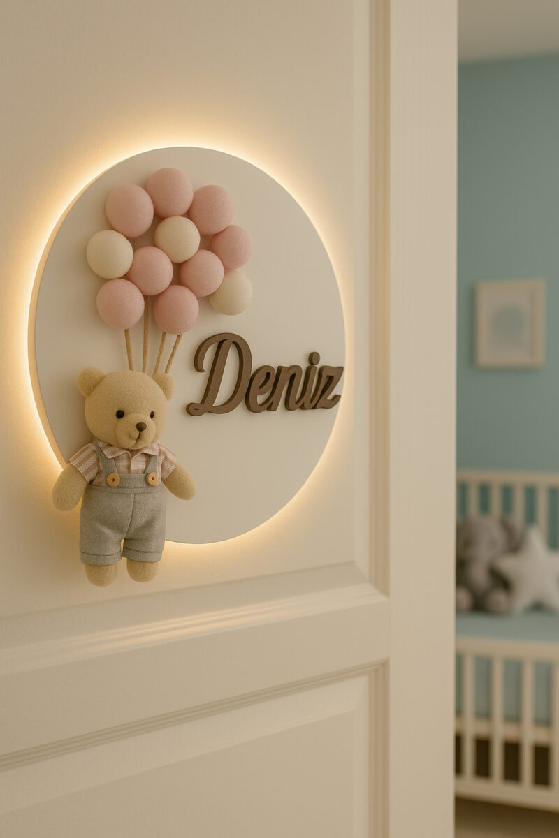 ✨ Kişiye Özel Işıklı İsimlik Bebek Odası Kapı Süsü – 30 cm